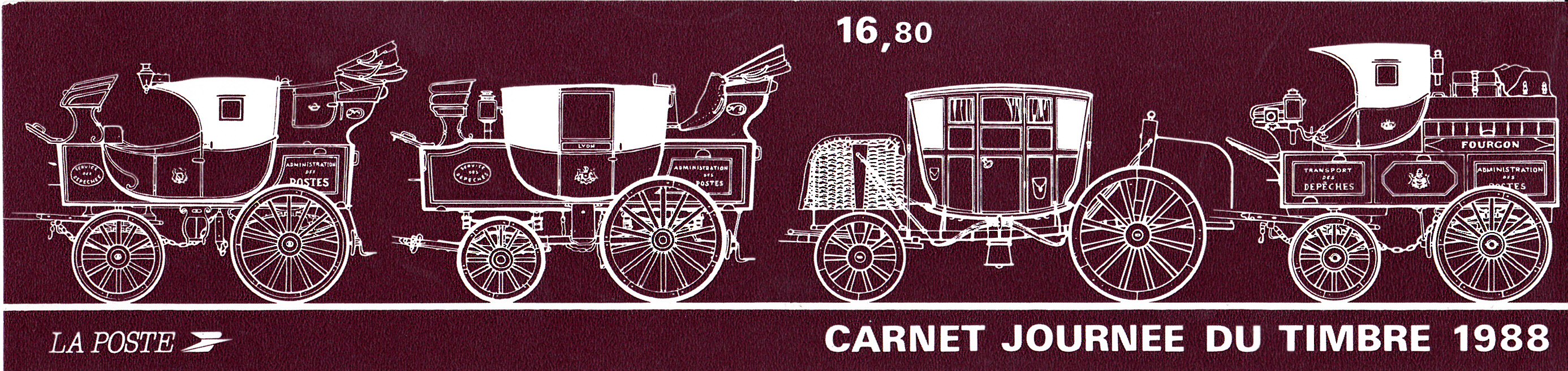 In Frankreich erschien am 12.3.1988 eine Marke zum Tag der Briefmarke 1988 mit der Abbildung einer Postkutsche. Die Marke ist im Bogen (MiNr 2662 A a) in der Farbe dunkelpurpurviolett auf weißviolett mit der Zähnung K 12 3/4 und im Markenheftchen in der Farbe (MiNr 2662 C b) schwarzlilabraun auf weißbraun Papier in der Zähnung K 13 erschienen.