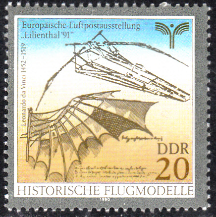 Zur Europäischen Luftpostausstellung "Lillienthal'91" ist 1990 in der DDR diese Marke (MiNr 3314) erschienen. Sie zeigt den "Normalsegelapparat" von Otto Lilienthal.
