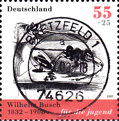 Die Jugendmarken 2007 (MiNr 2606 - 2609) zeigen eine Sequenz aus der Bildergeschichte. In den nächsten Beiträgen die Marken mit den entsprechenden Reimen von Wilhelm Busch: