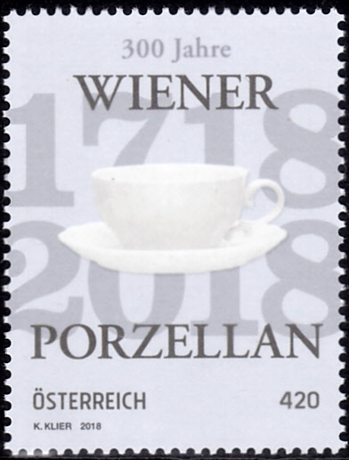Diese Marke aus Österreich (MiNr 3436) zum Thema "300 Jahre Wiener Porzellan" bildet eine Teetasse ab.