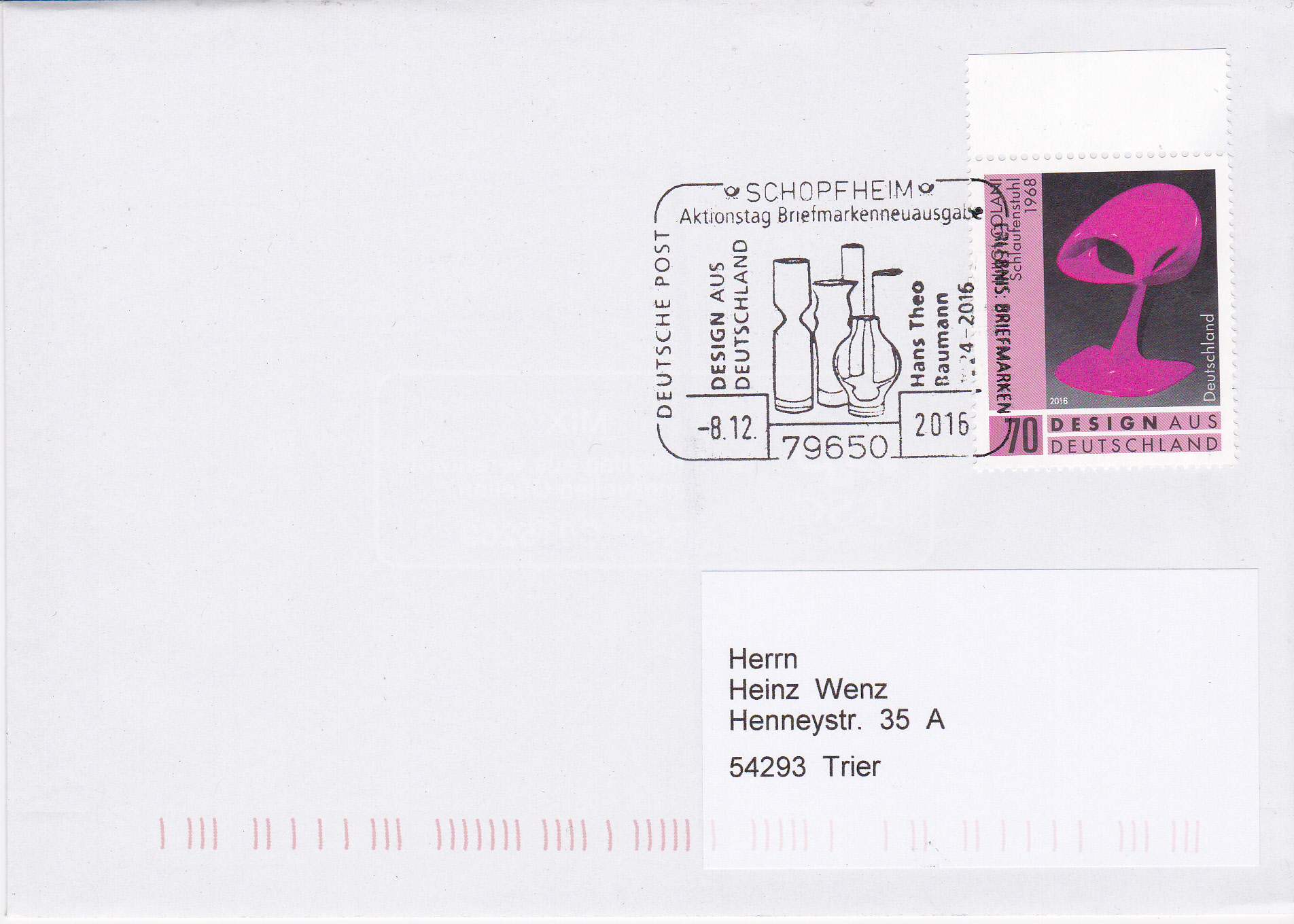 Bei der Deutschen Post AG ist eine Marke (MiNr 3271) mit einem "Schlaufenstuhl" aus dem Jahr 1968 von Luigi Colani erschienen.