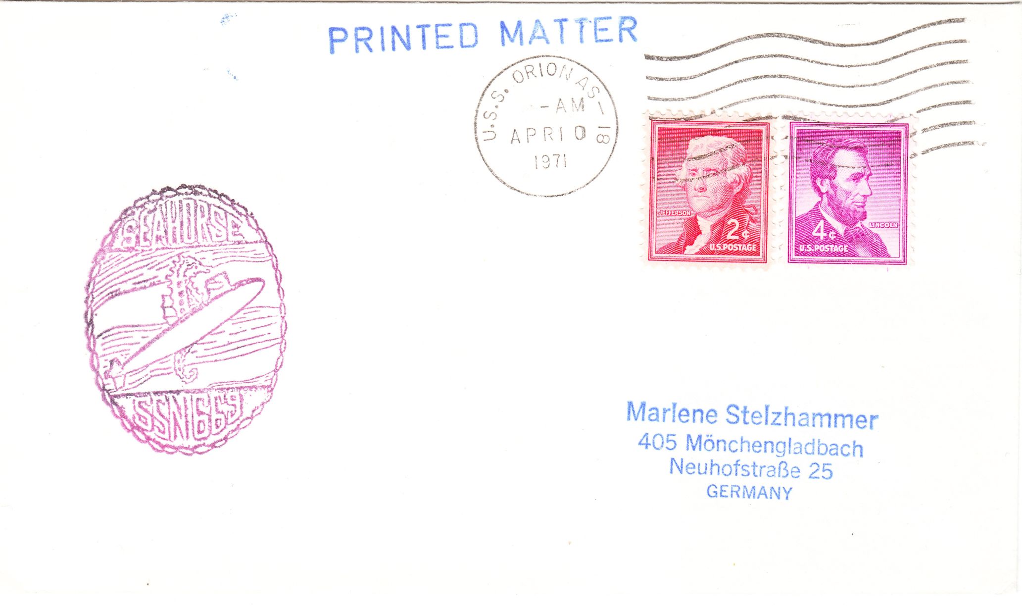 Die Frankatur wurde am 10.01.1971 an Bord des Tenders USS ORION (AS-18) entwertet: