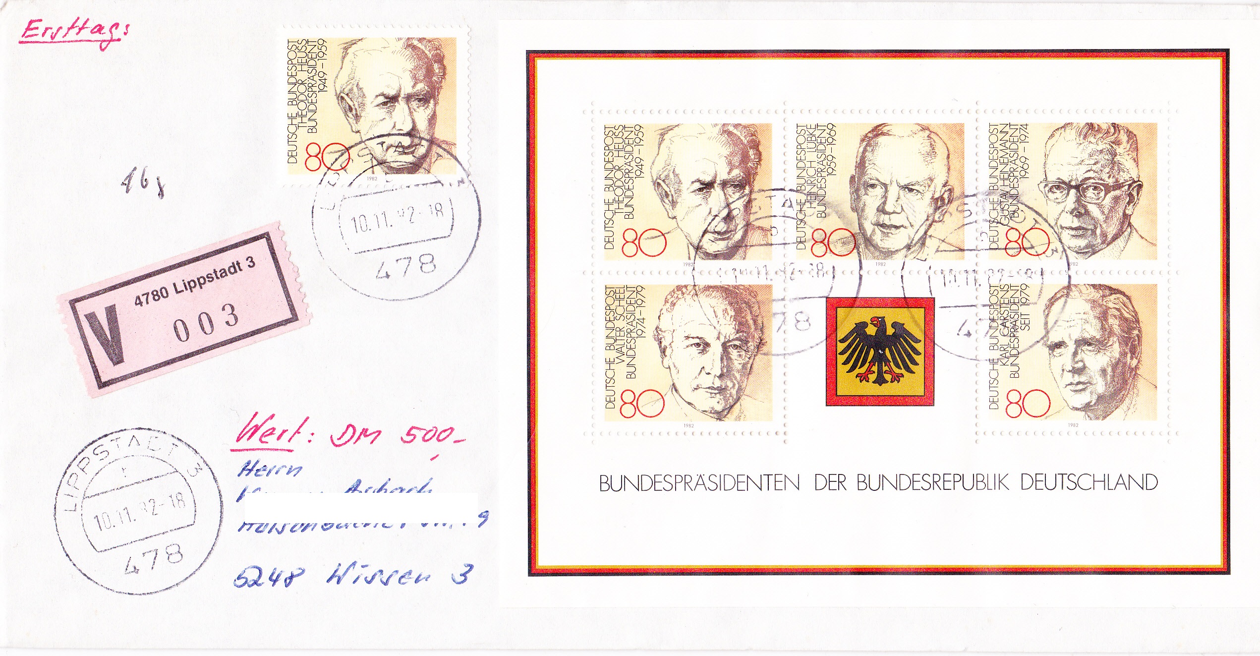 1982 erschien dieser Block zum Thema "BUNDESPRÄSIDENTEN DER BUNDESREPUBLIK DEUTSCHLAND":