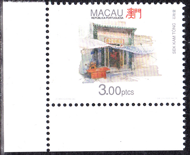 Diese Marke (MiNr 812) aus der Serie zeigt einen Sek Kam Tóng Tempel. Hier wieder ein Eckrandstück: