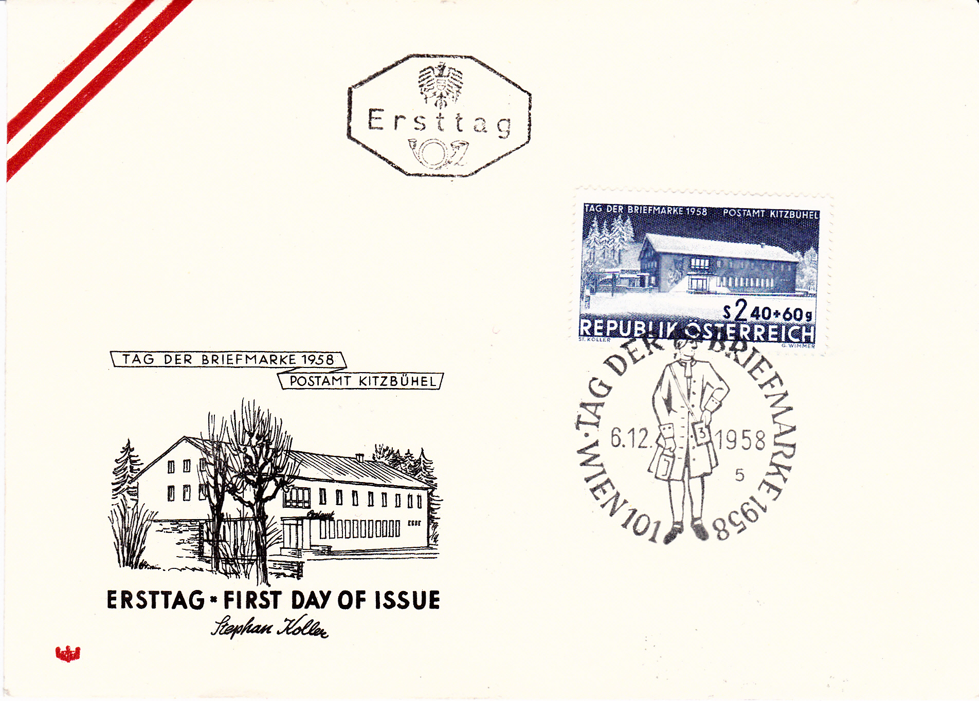 Zur Ausgabe zum Tag der Briefmarke 1958 gab es in Wien auch einen entsprechenden Sonderstempel aus Ausgabetag der Marke. Der Stempel hat die Kennziffer "5".