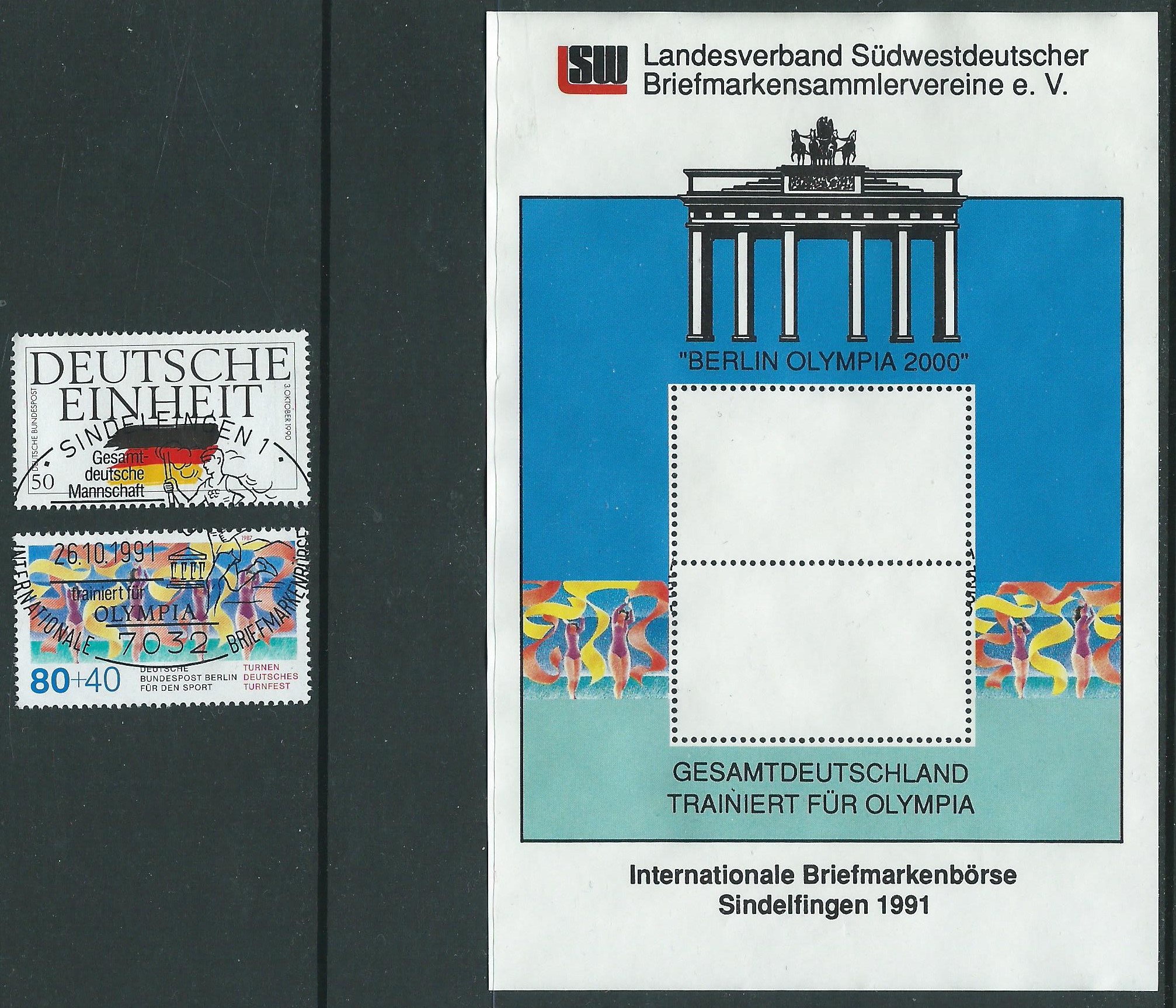 mir sind da 2 Sammelstücke in die Hände gefallen, mit denen ich nicht so recht etwas anfangen kann. Klar ist, es sind irgendwie Sonderdrucke für die Messe Sindelfingen 88 und 91. Was mich nur irritiert, die Marken sind mit einem Sonderstempel gestempelt worden. Sind das überhaupt "richtige" Marken? Zumidest fluoreszieren sie wie die normalen Ausgaben und sind mit Perforation in den "Block" (oder wie auch immer das hier bezeichnet wird) eigearbeitet. Auch haben sie auf der Rückseite eine Gummierung. Oder ist das hier eher mit den "Privatganzsachen" zu vergleichen? Also Sonderdrucke auf Privatbestellung? Kann mich da bitte mal jemand aufklären?
