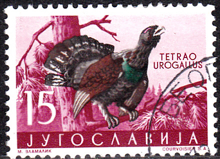 In der gleichen Serie gibt es auch eine Marke (MiNr 843) mit einen Auerhahn (Tetrao urogallus).