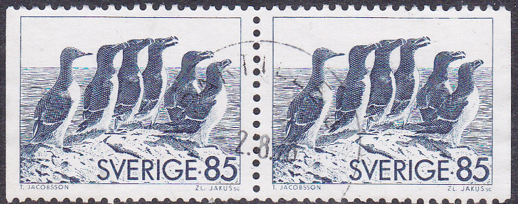 In Schweden eine Marke (MiNr 937) erschienen, die auch eine Trottellumme (Uria aalge) zeigt. Wenn man das Markenbild genauer anschaut erkennt man, dass der linke Vogel eine Trottellumme ist, die anderen haben einen kräftigeren Schnabel und sind Tordalke (Alca torda).