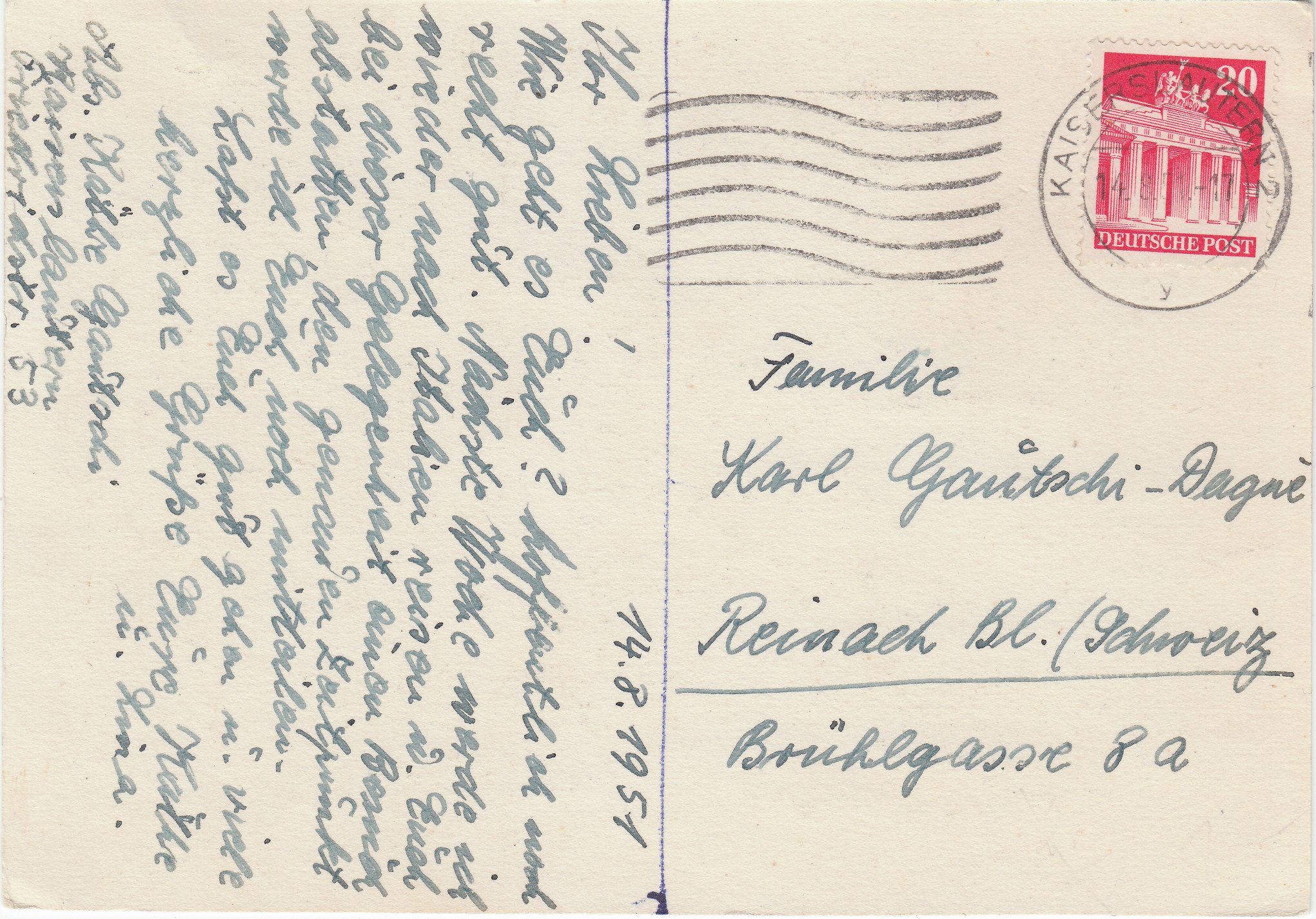 Hier ein solches Exemplar vom 14.08.1951 von KAISERSLAUTERN 2 nach Reinach bei Basel in der Schweiz: