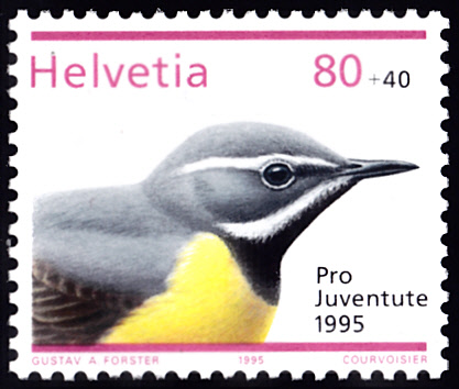 Auf dieser Marke aus der DDR (MiNr 1840) wird uns eine Gebirgsstelze (Motacilla cinerea) vorgestellt.
