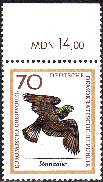 Einen Steinadler (Aquila chrysaetos) sehen wir auf dieser Marke (MiNr 1152) aus der DDR.