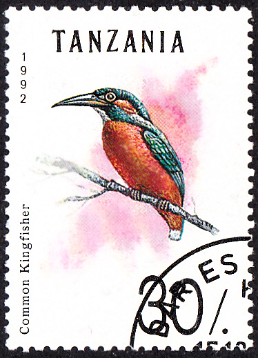 In der gleichen Serie ist in Tansania auch diese Marke (MiNr 1319) mit einem Bengaleneisvogel (Alcedo atthis bengalensis) erschienen.