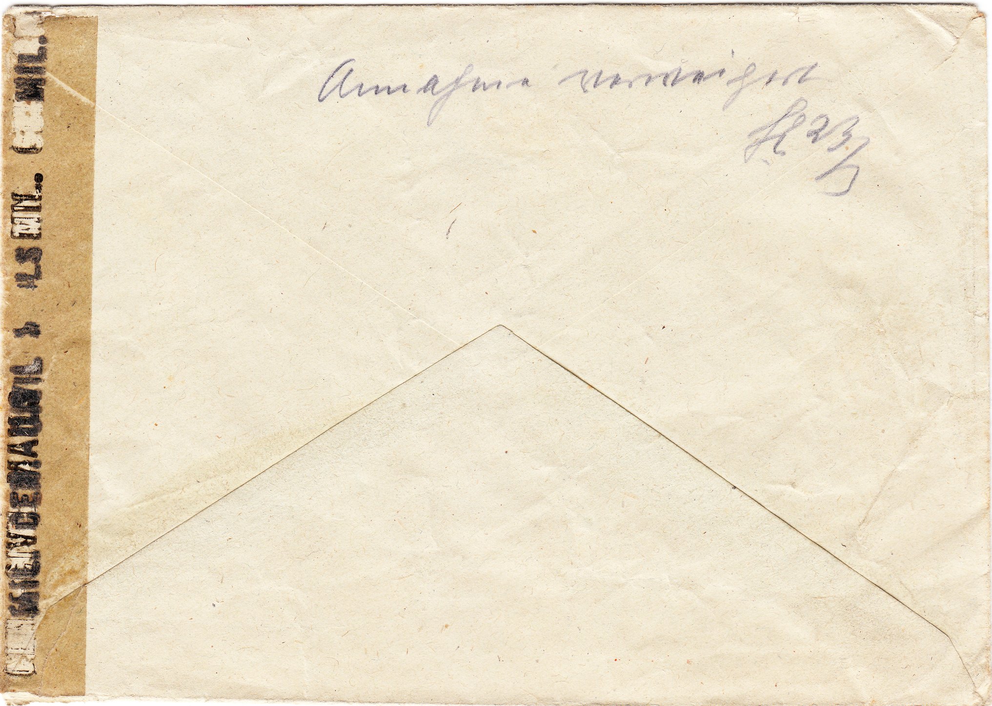 Der Brief lief durch die US-amerikanische Militärzensurstelle in Berlin, wurde dort linksseitig geöffnet und mit einem Zellophanstreifen "OPENED BY MIL. CEN.-CIVIL MAILS" wieder verschlossen, was ein vorderseitig abgeschlagener Prüferstempel "11964" dokumentiert.