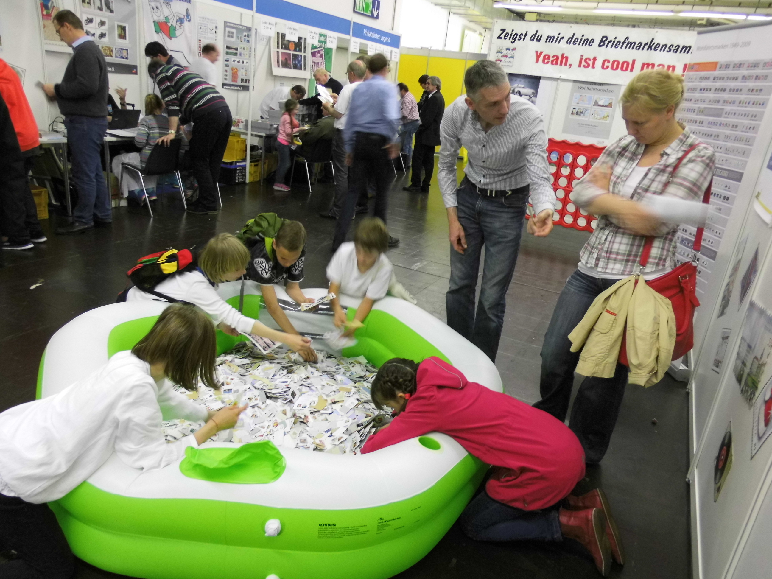Und sogar ganz junge Sammler wollten ein Gefühl wie Onkel Dagobert haben und in Briefmarken baden: