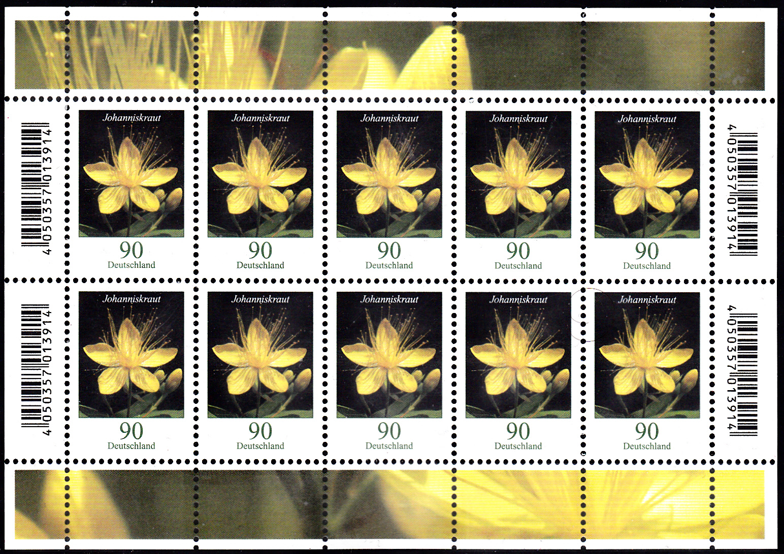Ebenfalls am 11.5.1017 erschien eine Marke zu 90 Cent aus der Serie "Blumen" mit dem Motiv "Johanniskraut" (MiNr 3304).