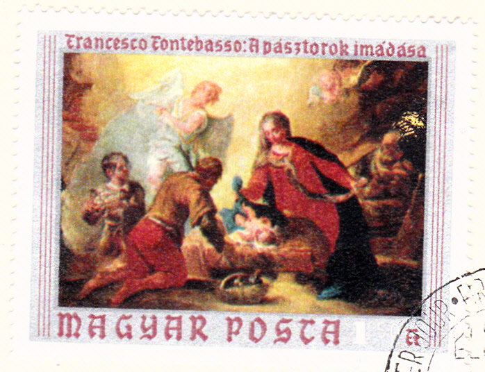 In einer Serie "Gemälde" ist in Ungarn auch eine Marke (MiNr 2636 A) mit dem Gemälde "Anbetung der Hirten" von Francesco Fontebasso erschienen. Hier wurde eine Marke auf einem Brief mit Einschreiben in die Schweiz zur Frankatur verwendet. Die Marke gibt es auch geschnitten. Rückseitig wurden zwei Marken zur Vervollständigung des Portos verklebt.