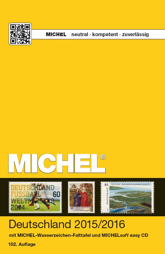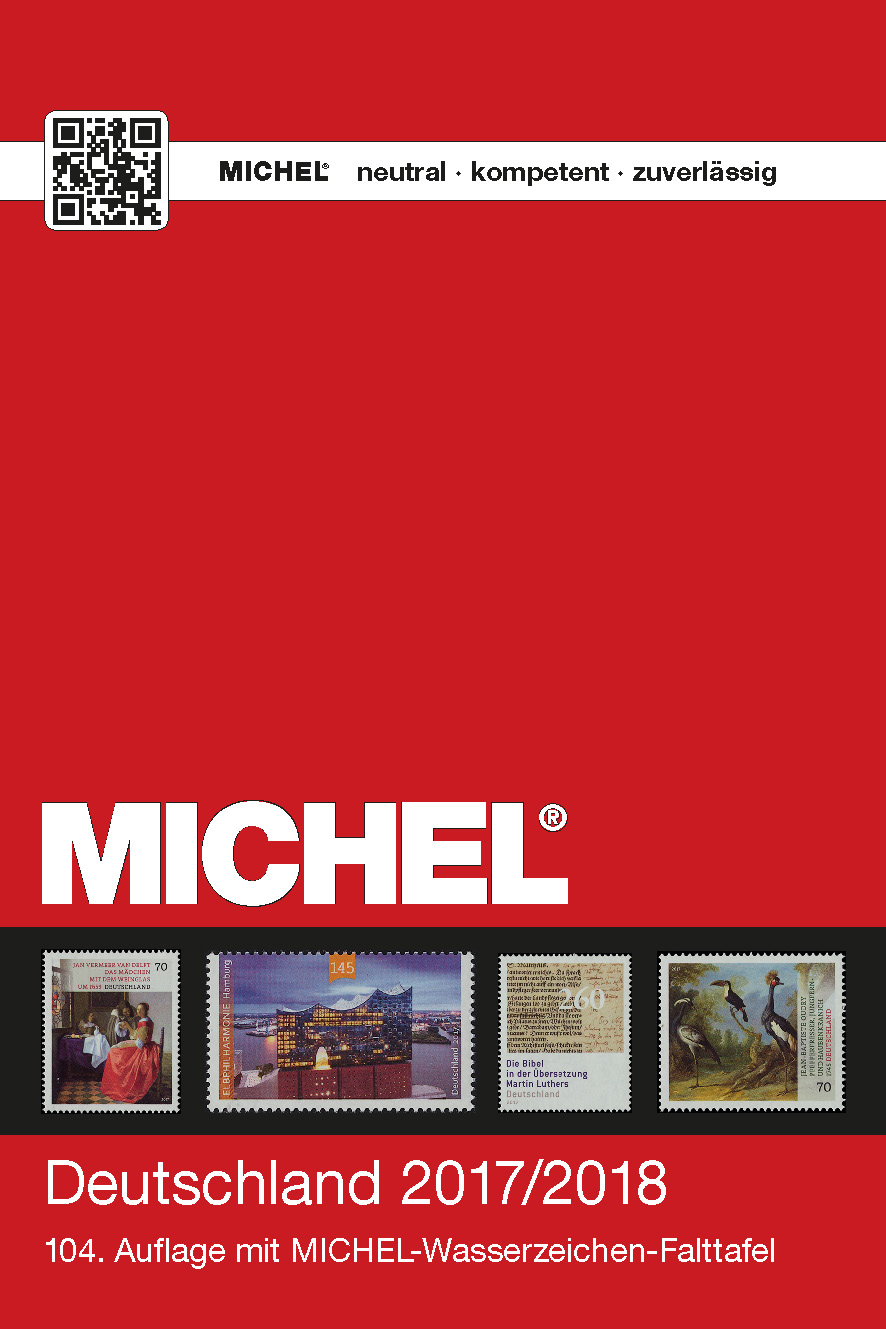 Ab dem 5.7.2016 ist der neue Michel Deutschland 2016/2017 in der 103. Auflage in Farbe mit 1120 Seiten im Format: 155 x 230 mm als Hardcover im Handel erhältlich. Der Katalog kostet in der Papierversion 54,80 € und in der MICHEL-Online-Bibliothek 27,40 €.