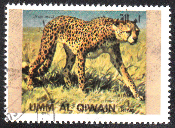 Ein weiterer Gepard auf einer Marke (MiNr 1371) aus Umm al-Qaiwan, einem der sieben Emirate der Vereinigten Arabischen Emirate (VAE).