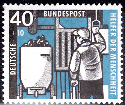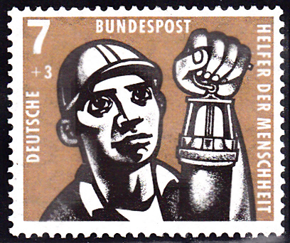 Ein Beispiel findet sich in der Dauerserie Unfallverhütung, hier die Version aus Berlin, MiNr. 406: