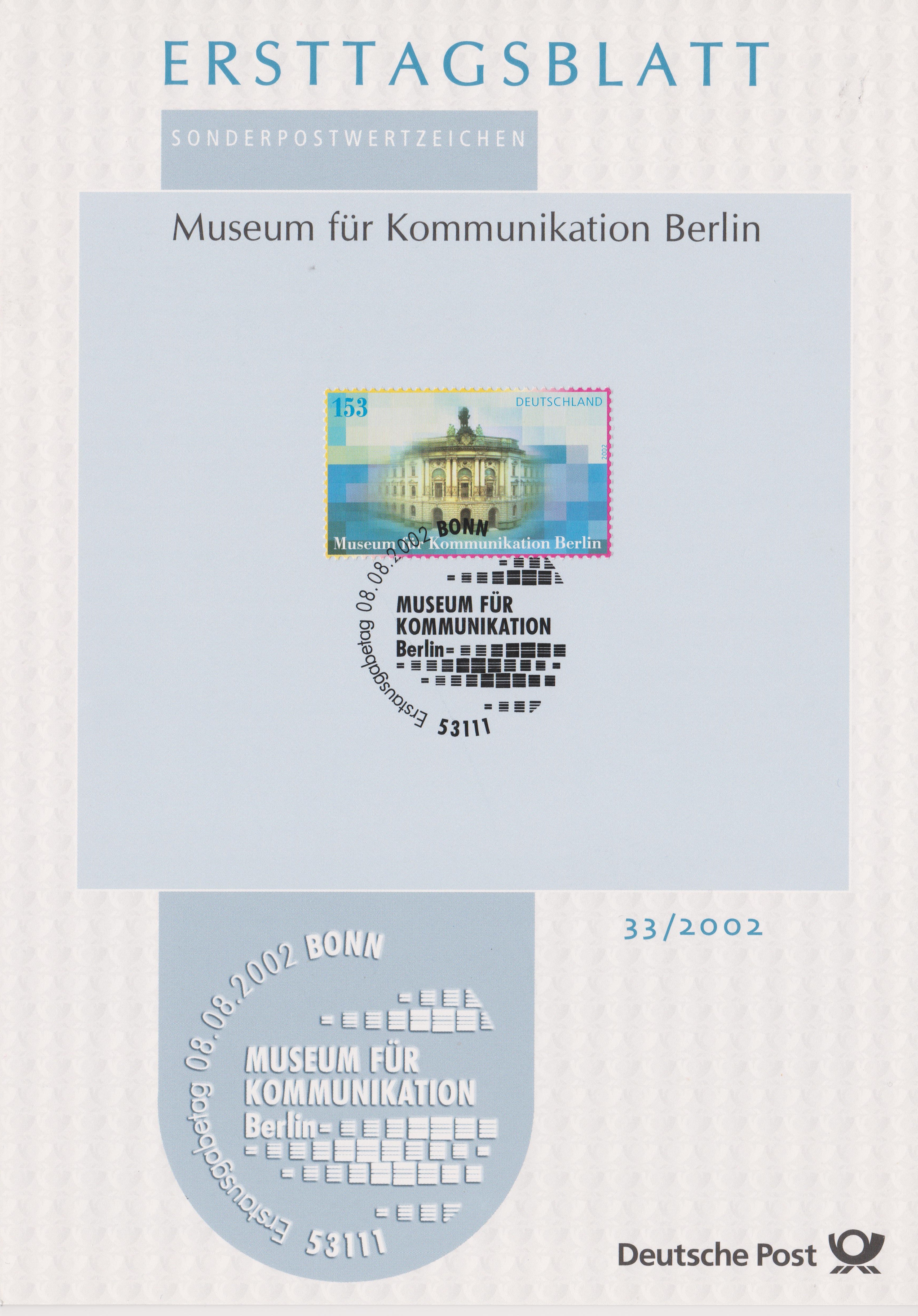 ETB 33/2002 zeigt die Sondermarke "Museum für Kommunikation Berlin" mit ESST BONN: