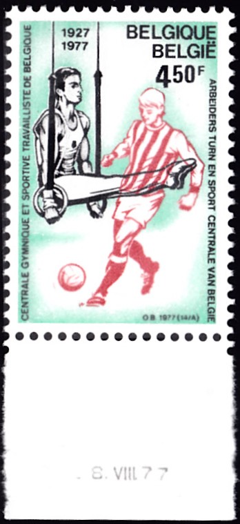 In Belgien ist in einer Serie "Sport" eine Marke (MiNr 1915) erschienen, die auch einen Turner an den Ringen zeigt. Die hier gezeigte marke vom Bogenrand trägt das Druckdatum.