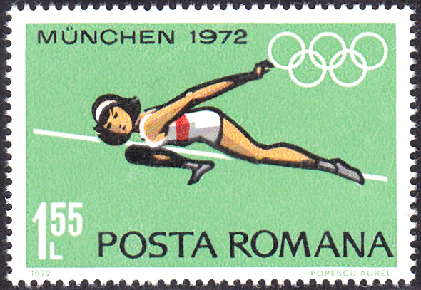 Auf der nächsten Marke (MiNr 3015) dieser Serie überquert eine Hochspringerin die Latte.