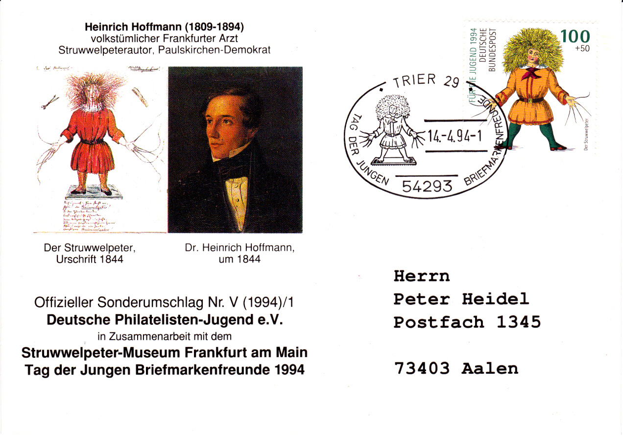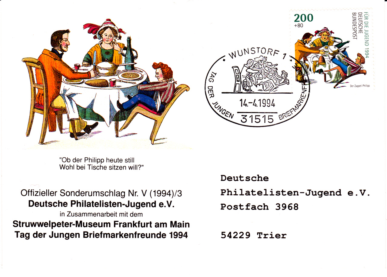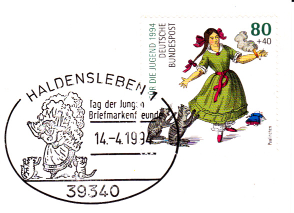 3. Bild im Sonderstempel aus Rödermark zum Tag der Jungen Briefmarkenfreunde am Ersttag der Markenserie.