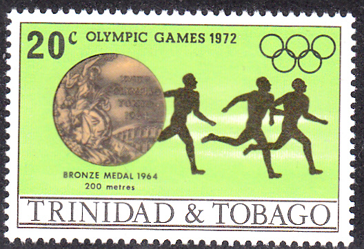 In Trinidad und Tobago ist eine Serie mit fünf Marken zu den Sommerspielen 1972 erschienen. Es werden Medaillengewinner der vorangegangenen Spiele gewürdigt. Hier eine Marke zu 10 C (MiNr 306) zum Gewinn der Bronzemedaille 1964 im 4 x 400-m-Staffellauf der Männer.