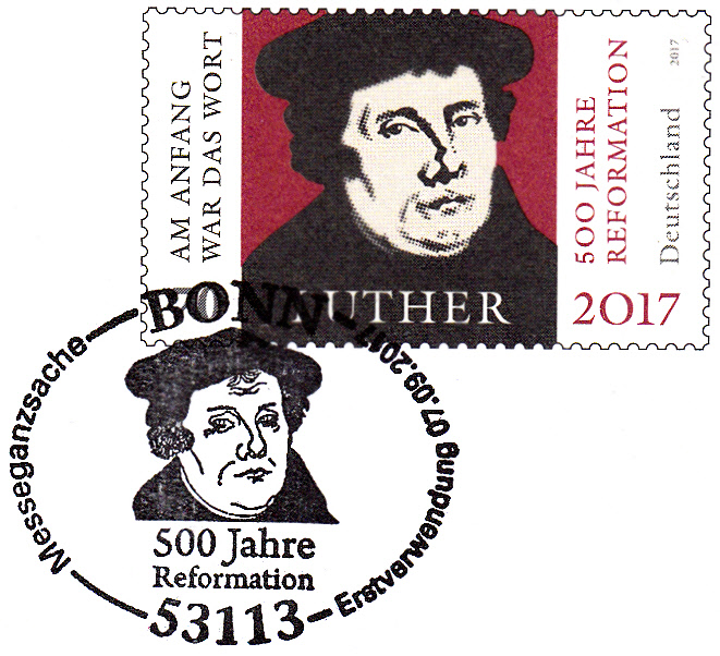 Am 500. Geburtstag von Martin Luther am 10.11.1983 gab es in Hamburg einen Sonderstempel zu einer Kunstausstellung "Luther und die Folgen für die Kunst".