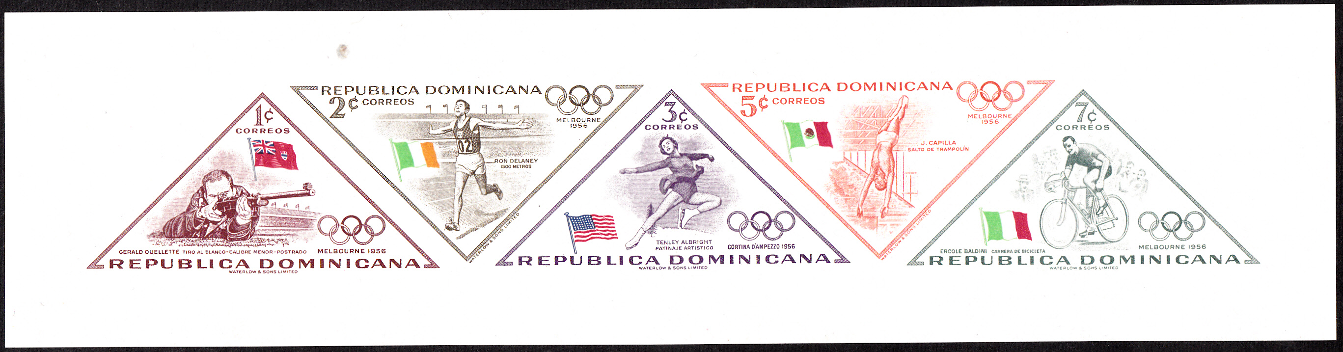 In dieser Serie aus der Dominikanischen Republik ist auch eine Marke (MiNr 661 A) mit Milt Campbell beim Laufen erschienen.