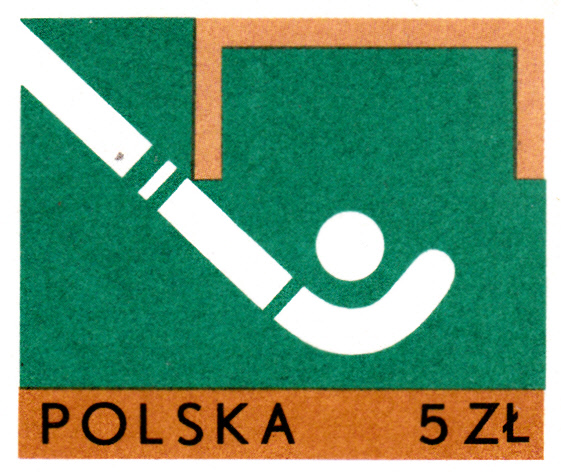 Diese Marke aus Jugoslawien ist zu den Olympischen Spielen 1980 in Moskau erschienen. Sie zeigt einen Ball, einen Teil eines Schlägers und die Füße eines Spielers beim Feldhockey.