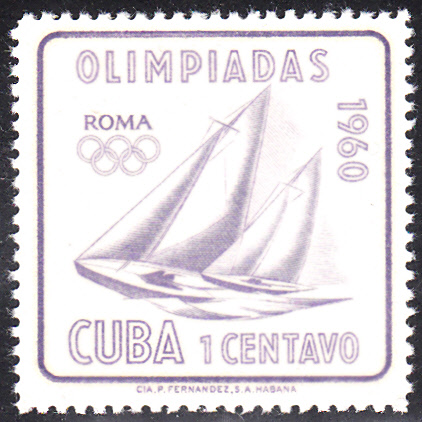 Aus Kuba kamen 12 Teilnehmer/innen zu den Wettkämpfen bei den Olympischen Spielen in Rom. Aus der kubanischen Serie zu den Sommerspielen 1960 stammt diese Marke (MiNr 669) mit einem Segelboot.