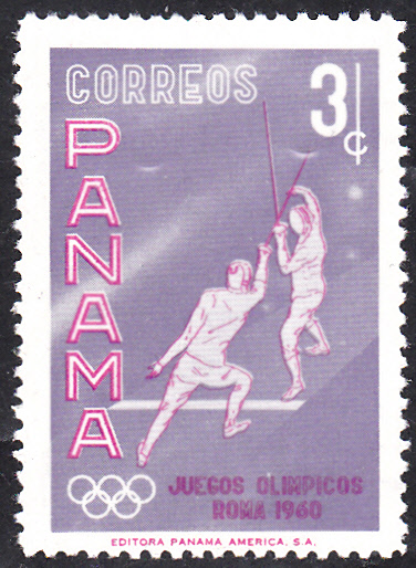Panama war in Rom mit sechs Sportler/innen vertreten. In Panama ist diese Marke zu 3 Cent (MiNr 572) mit der Abbildung zweier Fechter beim Kampf in einer Serie erschienen.