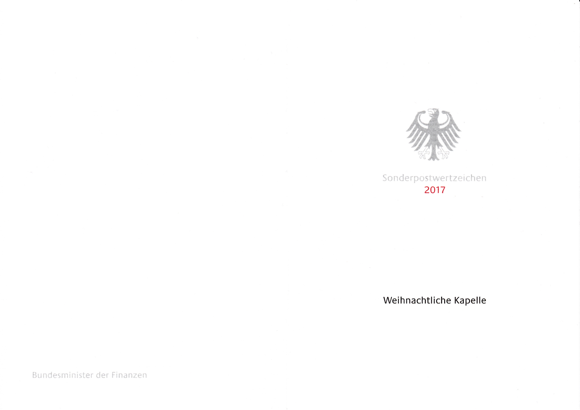 Die "weiße" Ministerkarte des Finanzministers mit der Weihnachtsmarke 2017 und dem Ersttagsonderstempel aus Berlin zeigt ebenfalls aus dem gleichen Grund keine Unterschrift des Finanzministers.