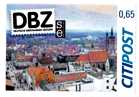 Dieser Briefumschlag wurde mit einer Citipost-Wunschbriefmarke der DBZ zu 0,65€ frankiert.