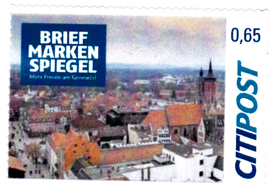 Dieser Briefumschlag ist mit einer Wunschbriefmarke des Briefmarkenspiegel zu 0,70€ frankiert. Der Brief wurde von der City-Post mit einem Freistempel der Deutschen Post versehen und dieser zur Beförderung übergeben.