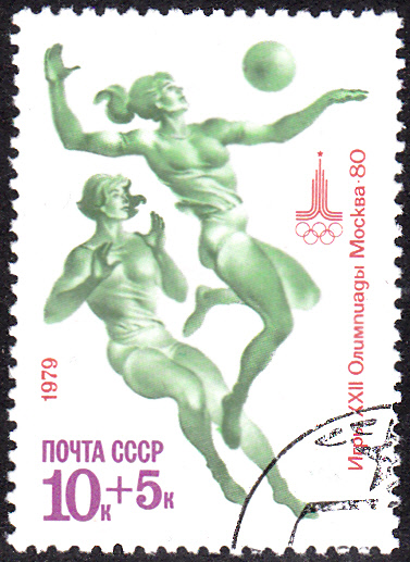 In einer der Serie der UdSSR zu den Olympischen Spielen in Moskau gibt es auch eine Marke (MiNr 4858) mit zwei Spielerinnen beim Volleyball.
