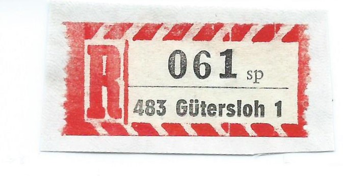 Als erstes einer der älteren Bund-Einschreib-Zettel, noch ohne Postleitzahl und Kennbuchstabe rechts am Rand :