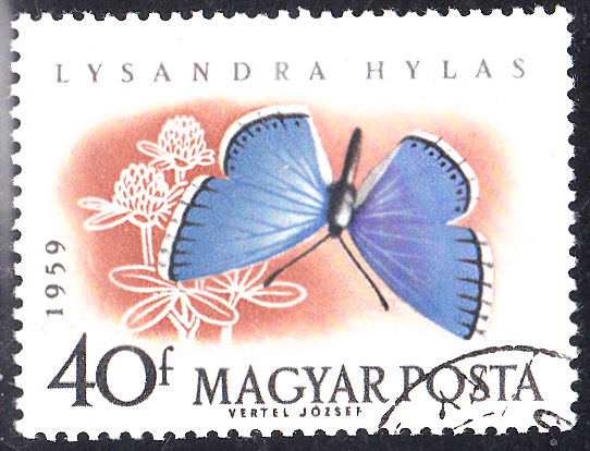 Hier eine Marke aus Ungarn (MiNr 1635 A) mit einem Wundklee-Bläuling (Polyommatus dorylas).