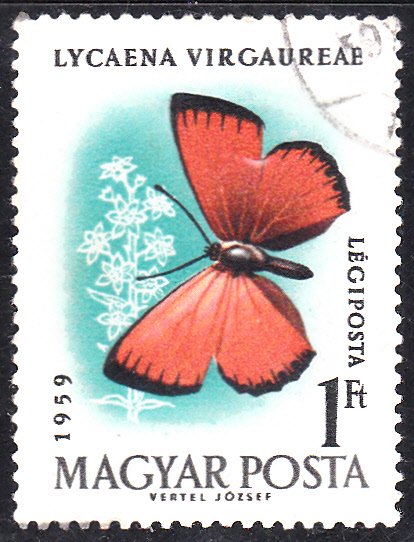 Auf dieser ungarischen Marke (MiNr 1637 A) ist ein Dukatenfalter (Lycaena virgaureae) abgebildet.