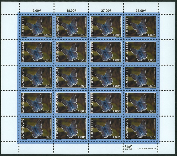 Ein Silbergrüner Bläuling findet sich auf einer luxemburgischen Marke.