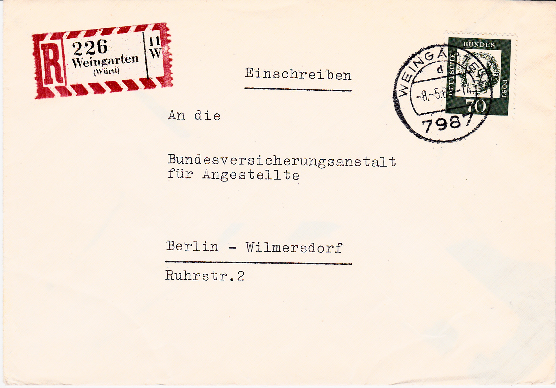 Der Standardbrief (bis 20g) kostete von 1.7.1948 bis zum 31.3.1966 20Pf.