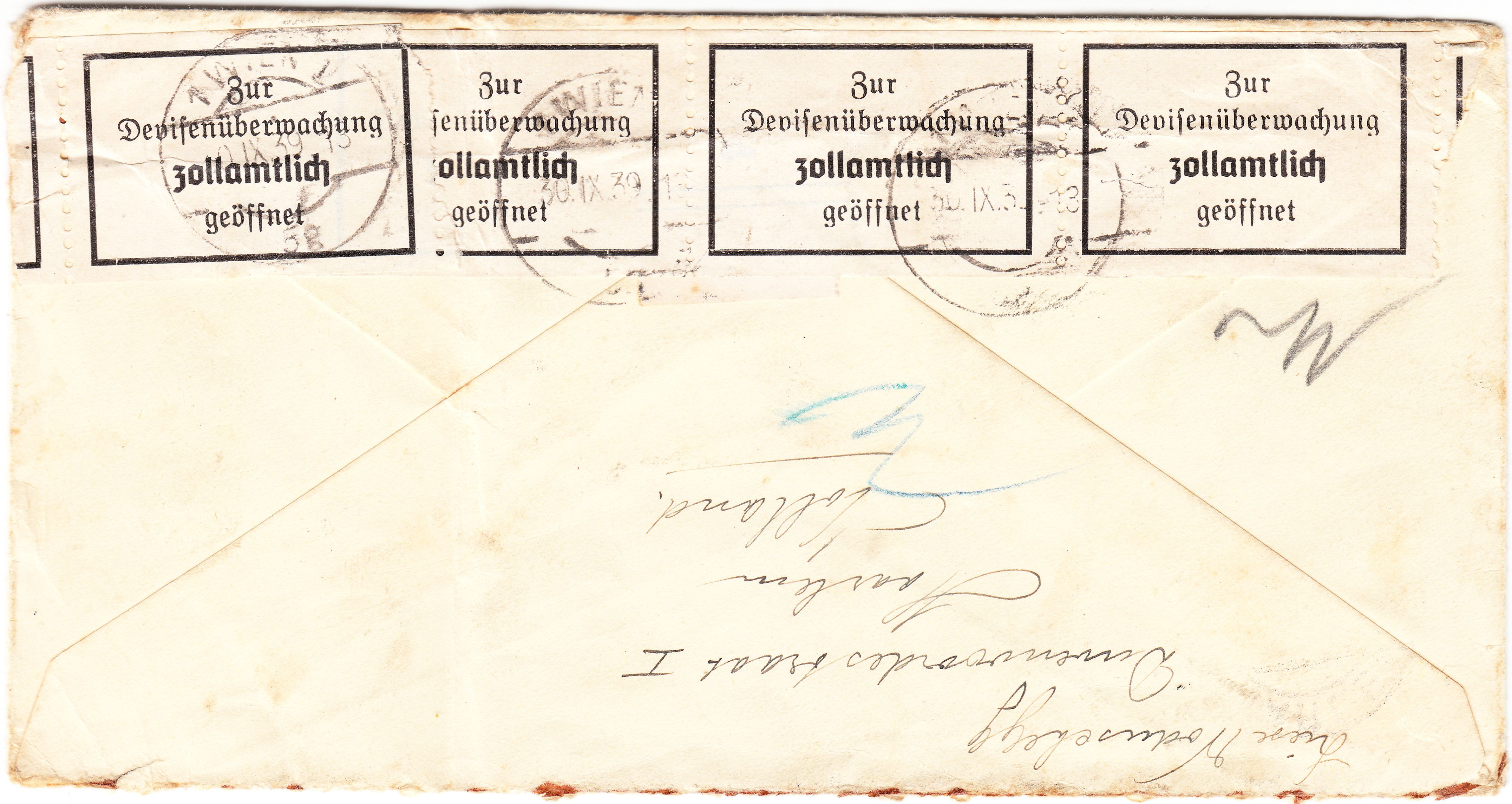 Und jetzt wird es richtig spannend, denn mit diesem Datum wird die bisher früheste Verwendung dieses österreichischen Klebezettels in der ABP Wien dokumentiert, die in der Frühphase, direkt nachdem sie eingerichtet wurde, die vorhandenen Mittel weiterbenutzte, um ihre ersten durchgeführten Prüfungen zu dokumentieren. Laut dem Katalog von Landsmann sind solche "Devisenzensuren" für die ABP Wien bisher erst ab Oktober 1939 belegt!