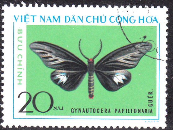 Hier eine Marke aus Vietnam (MiNr 835) mit einem Gynautocera papilionaria.