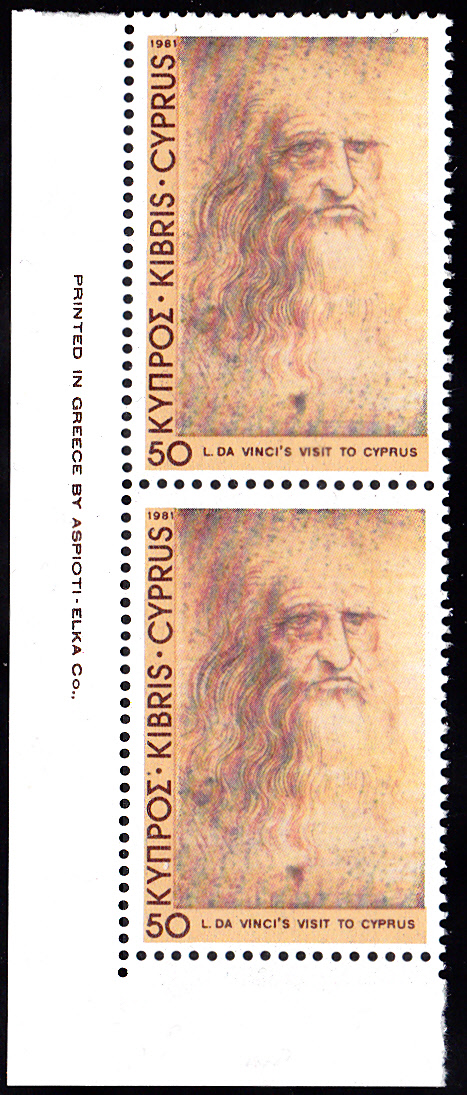 Zum 500. Jahrestag des Besuchs von Leonardo da Vinci in Zypern ist dort eine Serie mit drei Marken erschienen. Auf der Marke zu 50 M (MiNr 549) wird ein Selbstporträt von Leonardo da Vinci gezeigt.