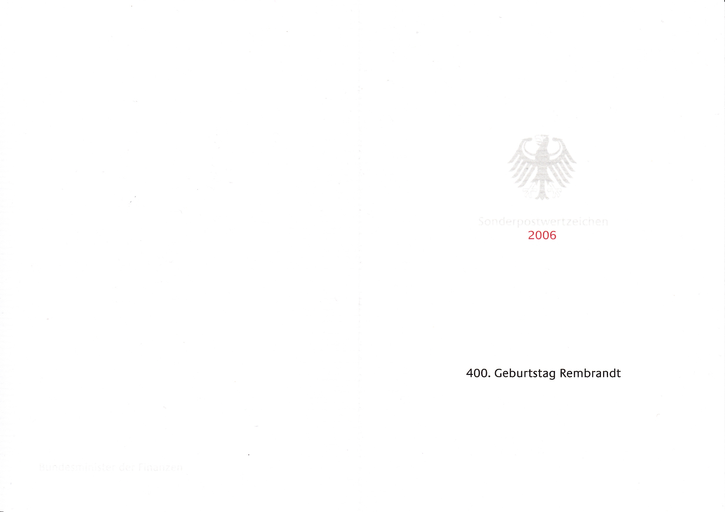 Der Gedenkumschlag zum 400. Geburtstag von Joachim von Sandrart (1606 - 1688, Maler und Kupferstecher) zeigt einen Wertstempel "400. Geburtstag Rembrandt" (MiNr 2550).
