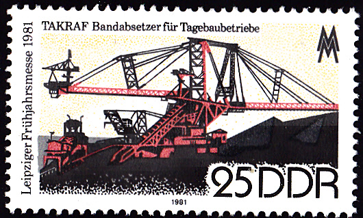 Die Marke zu 25Pf (MiNr 2594) bildet einen TAKRAF-Bandabsetzer für Tagebaubetriebe ab.