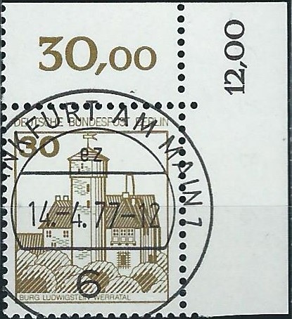 Dann noch eine Besonderheit der Sehenswürdigkeiten: Bei der 100 Pf-Marke liegen mir 2 Varianten vor: Einmal „normal“ und einmal etwas nach links versetzt.