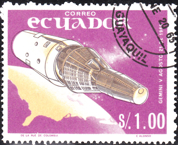 Im Jemen-Nord erschien 1969 in einer Serie "Bemannte Raumfahrt" diese Marke (MiNr 948), die auch an den Flug von Gemini 5 mit den Astronauten Ch. Conrad und G. Cooper erinnert (oben links).