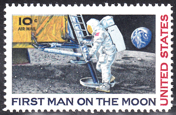 In den USA erschienen im Jahre 1994 zum 25. Jahrestag der ersten bemannten Mondlandung zwei Marken. Im Markenbild wird ein salutierender Astronaut mit US-Flagge auf dem Mond gezeigt.